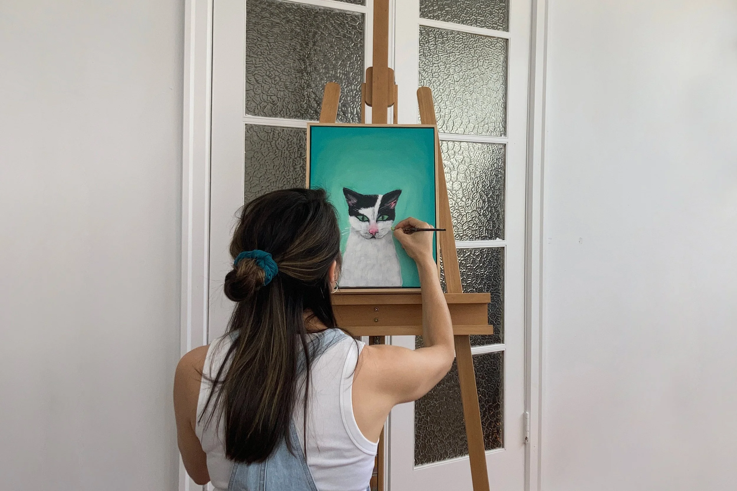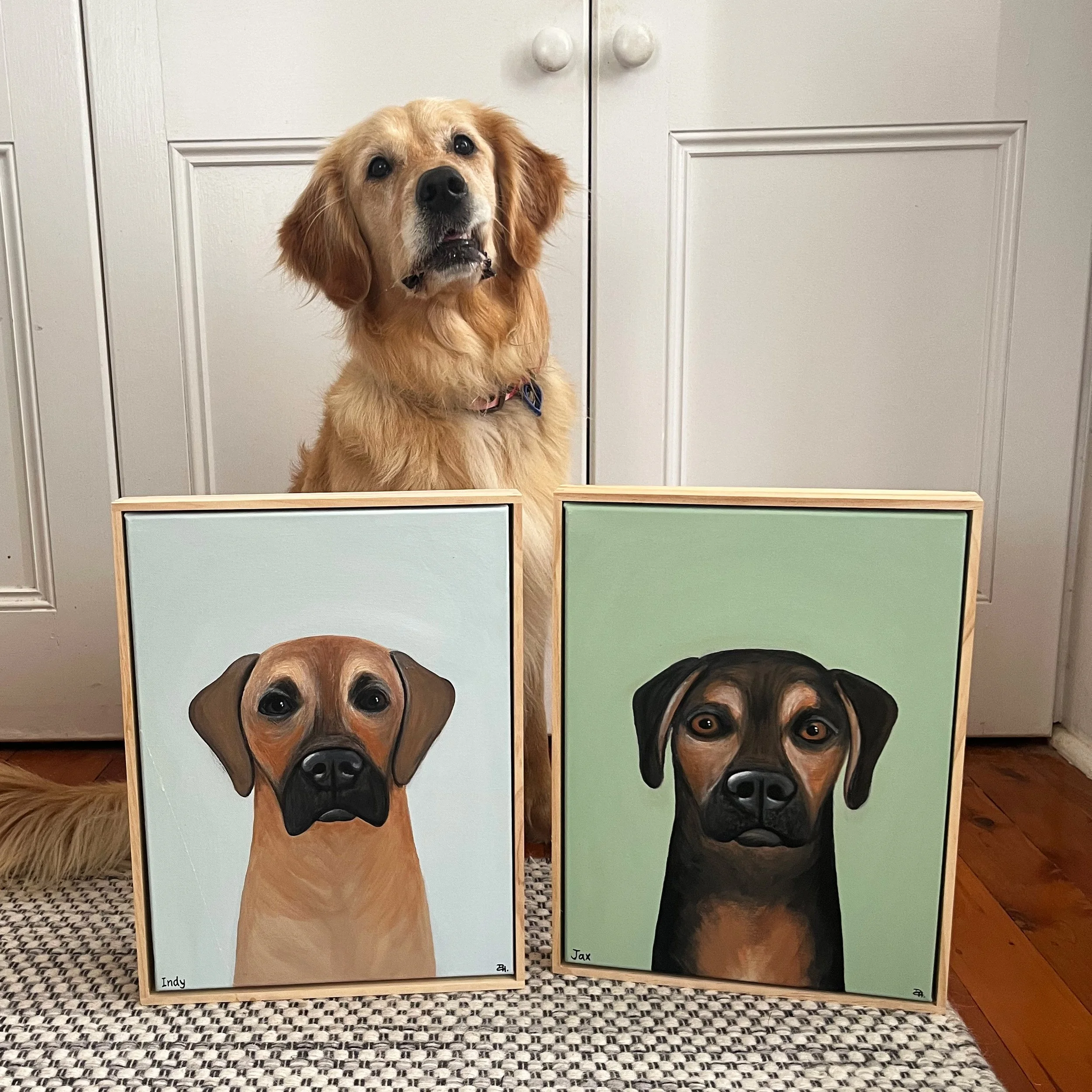At Joy & Co., I create custom ‘pawtraits’ of you and your bestie. Hand‑painted in acrylic on canvas, each piece is totally unique and captures the essence of your dog, cat, bird or lizard.